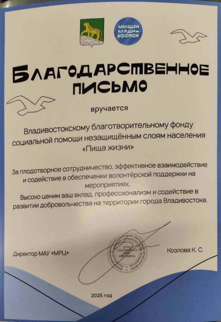 Благодарственное письмо Похожие записи Несколько благодарностей которые мы отсканиро...Отчёт по акциям и сборамБлаготворительному фонду "Пища Жизни" исполни...Наша кухня (видео)
