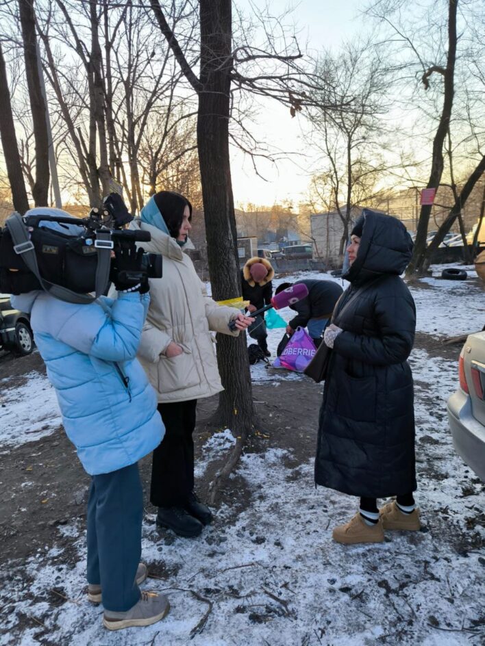 В пятницу молниеносная раздача горячего обеда, было много людей🙌ТВ Приморье снимали репортаж и брали интервью у нашей Юлечки))