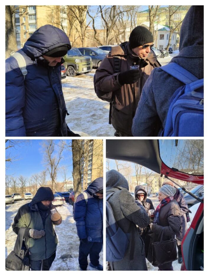 Раздача горячих обедов на Покровском парке. Особенно благодарят за вкуснейший напиток!