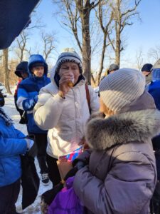 В пятницу на Покровском парке раздавали восхитительный борщ и печеньки с будочками. Горячий напиток согрел всех!!!